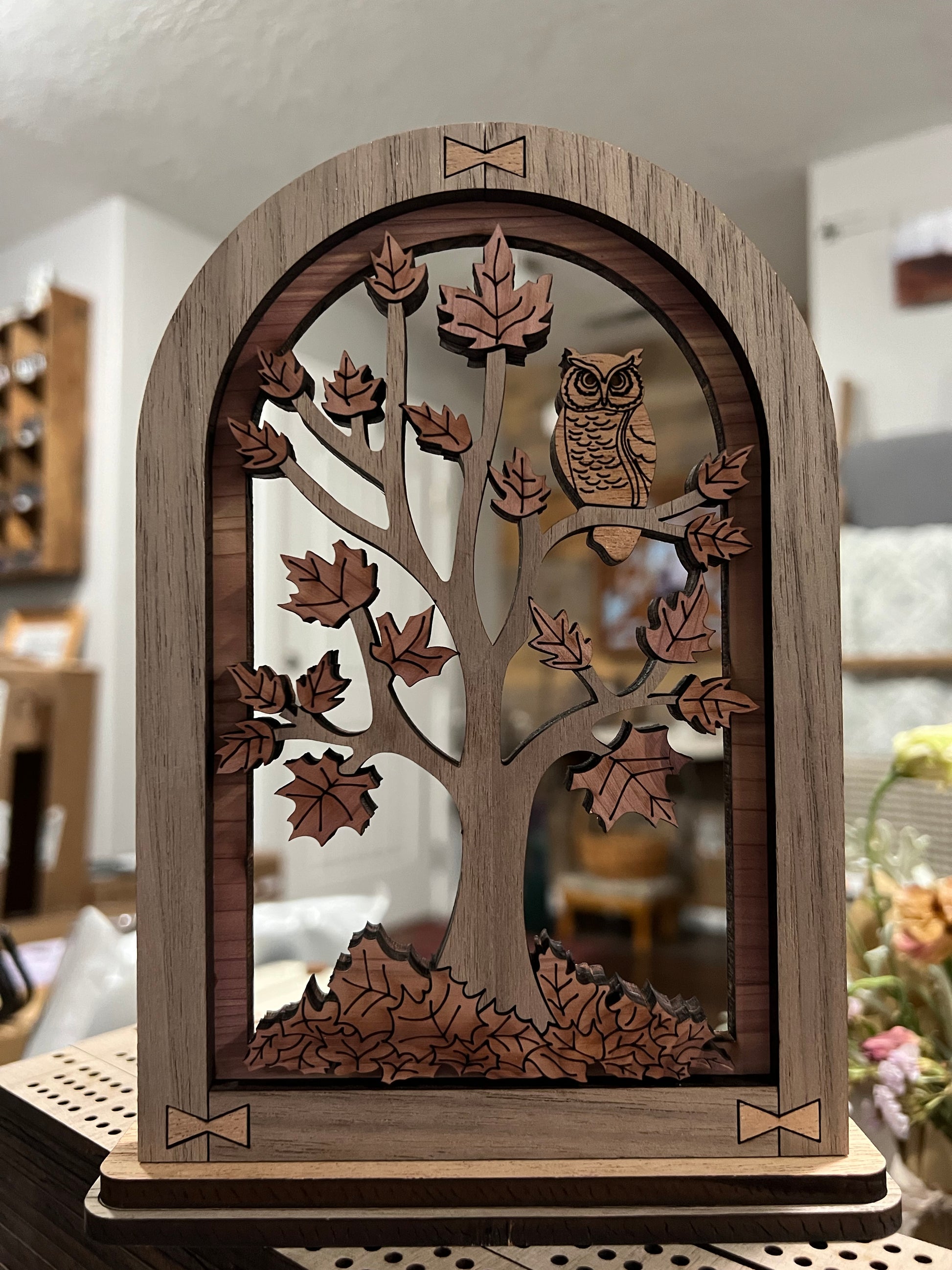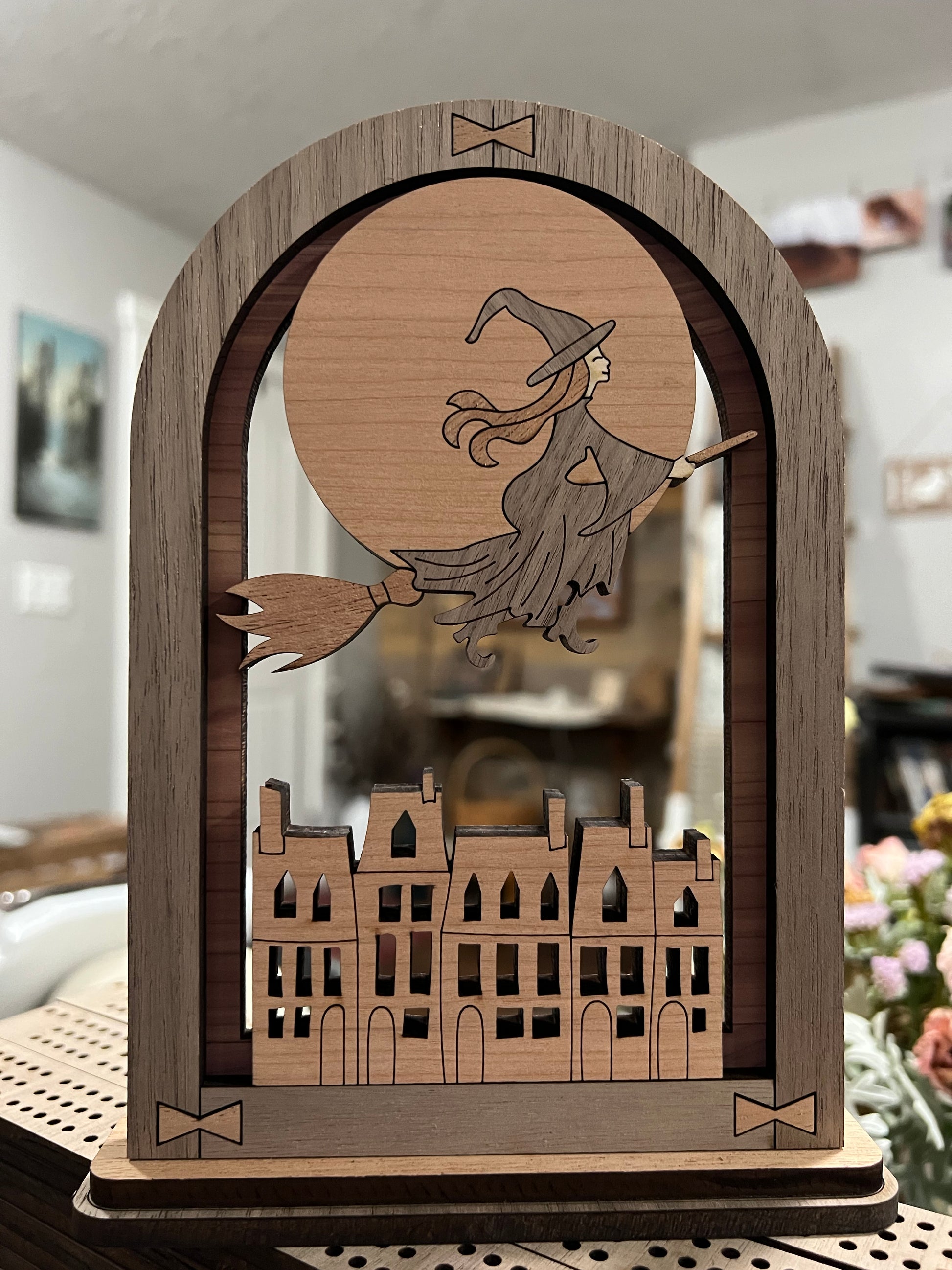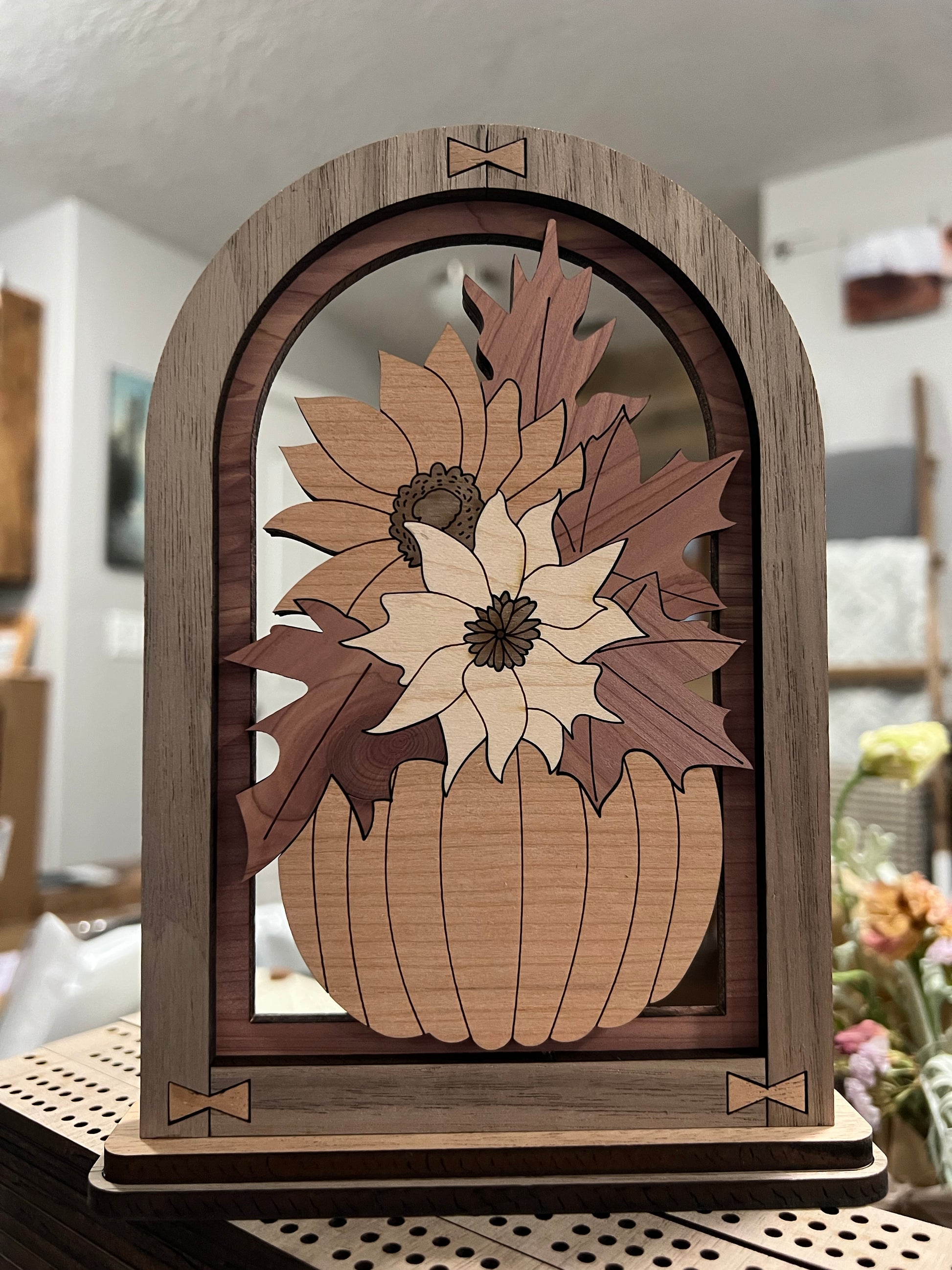 Celebrate the magic of autumn with Fall Arches, an arch-shaped table decoration crafted from multiple varieties of hardwood. Featuring charming fall themes like pumpkins, haunted houses, ravens, witches, and harvest motifs, this playful piece adds a festive touch to your home. Its sturdy wood construction ensures lasting beauty, making it a perfect centerpiece for cozy gatherings and seasonal cheer.