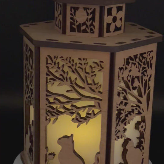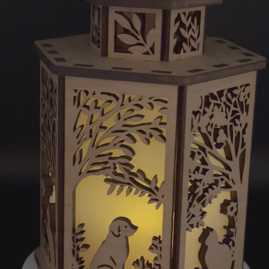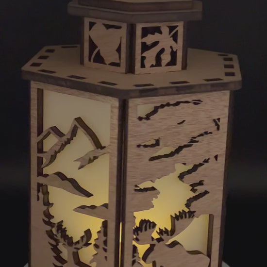 Illuminate your home with our beautiful 6-sided lanterns, available in mahogany or cherry wood. Choose from an array of charming themes such as deer, Idaho, wildlife, dogs, cats, nativity, and owls. Each lantern includes a battery candle with a 6-hour timer for convenience. Bring warmth and character to any space with our unique lanterns.