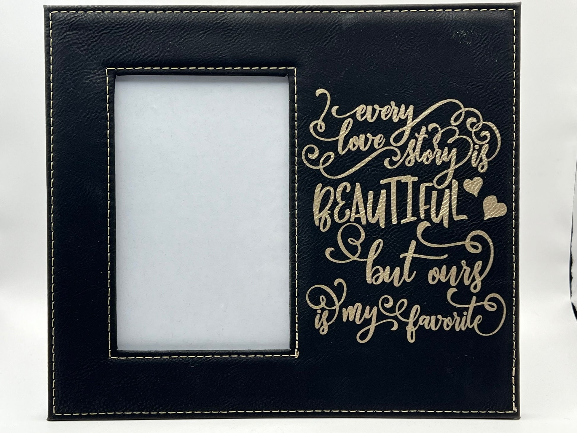 Show off your favorite 4x6 memories in style with this playful leatherette picture frame! Customizable with laser engraving, it adds a personal touch that makes every photo pop. Perfect for gifting or sprucing up your space with a bit of fun flair. Frames can be displayed in portrait or landscape orientation for ultimate flexibility.